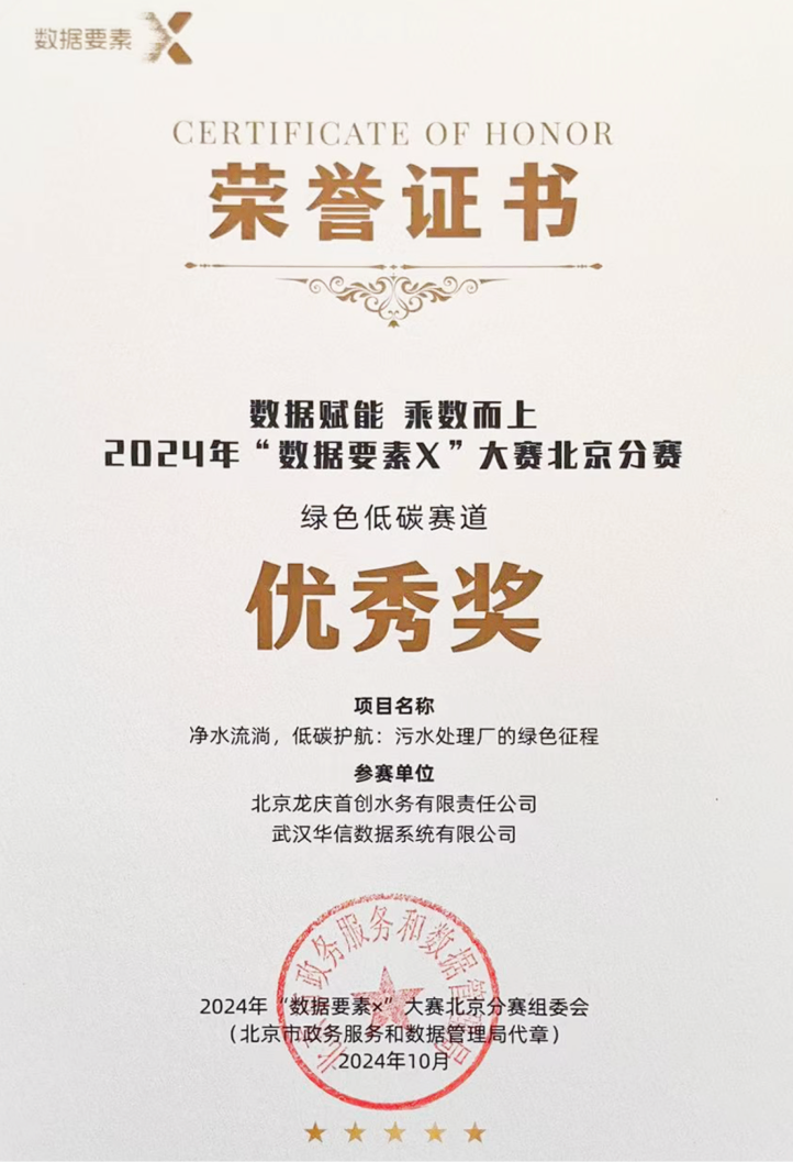 大赛北京分赛区是全国20个赛区中最重要的赛区,奖项评审由6位院士领衔的专家团队完成。武汉DB真人旗舰 DB数据系统有限公司与北京龙庆首创水务有限责任公司合作的项目,凭借其在污水处理领域的创新性应用以及对数据要素的有效利用,赢得了评委的高度认可。